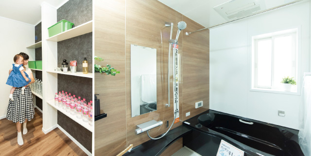 (右)排水口はお湯をぬくだけで「カンタンキレイ」に! 浴槽は防汚クリア層で「水アカ汚れ」を防ぎます!