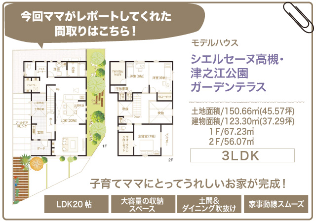 今回、真由子ママと芽依ちゃんが訪れたのは、JR高槻駅から自転車で8分のフラットアクセス!周辺には緑が美しい津之江公園もあり、タウン内には「たんぽぽ公園」「なでしこ公園」がある子育て世代のママには嬉しい環境です。
